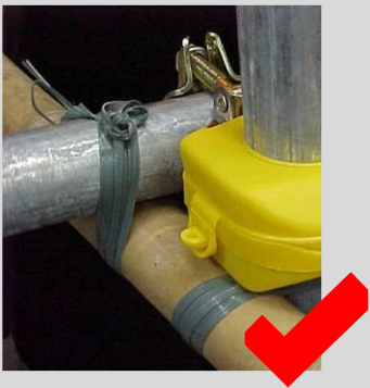 所有鋼通採用金屬扣連接,而竹杆與竹杆和竹杆與通則採用膠帶綁緊。