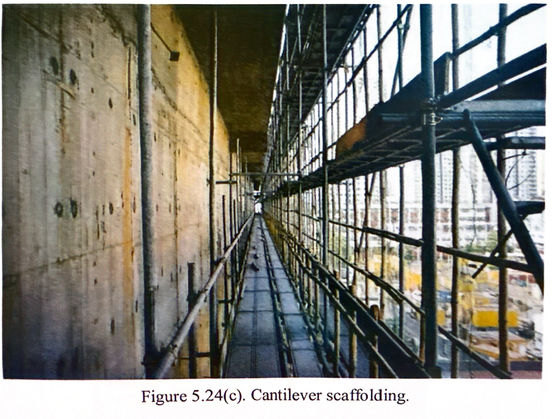 (b) 考慮混合棚架構件(如管材及扣件)的強度、混合棚架所承受的荷載,以及需處支撐鋼支架設計中需考量的特殊現場條件(例如,可能需要在混合棚架上設置大型開口以及安裝外伸式懸吊平台)4